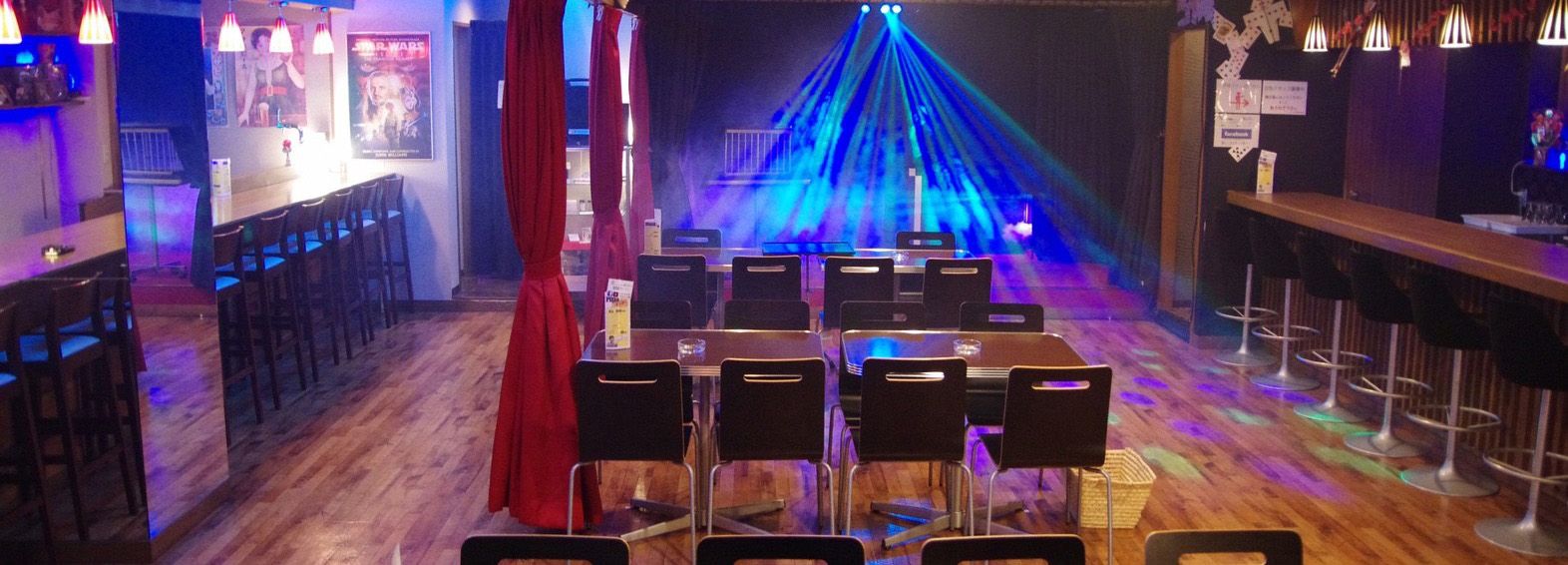 約100種類のドリンクと60名収容の広い店内と音響・特殊照明を完備したステージ。